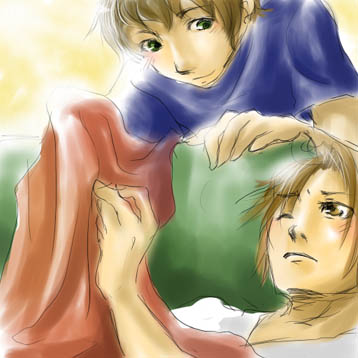 ************************** ロマーノー、朝やで~ソファーで寝たら身体痛いやろ~? なんだよタオル持って行くなよちくしょうめ! ************************** SAI初めて使った。良い感じだけど、使い勝手がまだ掴めていない感じもありありと。 そしてスペイン兄ちゃん実は初描きなんじゃね?という驚愕の事実(笑) 今、南イタリアと、スペイン南部に文通してる友達がいるのですが、そういえば、このコンビだった!!と突然思い至りました。南欧ペア。 おまけに、最近買ってはまっている「チェーザレ」っていうマンガが、イタリアの歴史物で、スペインの人がイタリアで活躍する話だから、なんとなく南欧に親近感がわき出した今日この頃だよ!! チェーザレでスペインの人が着てる服がかっこよいので、近いうちにスペイン兄ちゃんに着てもらおうと思います。 フィレンツェ風の衣装はヴェネの方に着せたいなぁ! どうでもいいんですが、ロマーノってローマっ子って意味だったのね・・・! 江戸っ子みたいな!! てことはヴァチカンがあるのはロマーノのほうかい?! っていうかローマってイタリアの真ん中あたり・・・。 ヴェネツィアーノとロマーノの境界がどのあたりか気になるような、どうでもいいような・・・・。 ヘタリアサーチさまお疲れ様でした!! 閉鎖の前日に珍しくヘタリア系のネットサーフィンしまくってたんですが、これって虫の知らせってやつだったんですか?! ちょっとびっくりした。 本家さんは日本とアメリカが久しぶりに来てる気がするよ!ゲイツと惚れ銃。 自分にあの銃打ったアルフレッド君が本田君とうわあ!! っていうベタなのを誰か描いてくれませんかよみてぇぇー!!ベタクイズに出ちゃうくらいベタな展開でいい(笑) 音楽聞いてたらまたFLASH作りたくなってきた。 構想はあるんだけど、練ってる途中なのであります。 そのまま化石になったりもするであります。 明日は会社のイベントでソフトボール大会なんだけど雨な予感・・。 上手いこと天気が持って、上手いこと事が運ばないかなぁと思っているところ・・・。 |