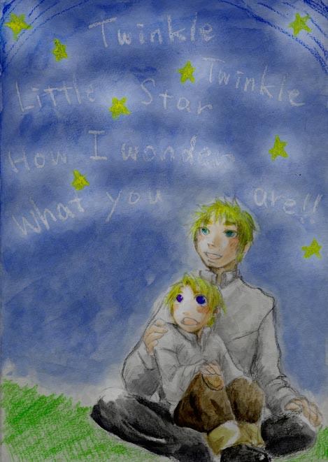「もっと英語漬け」にどっぷりここ数日漬かっております。 いと面白し。 そこにきらきら星を英語で書き取る課題があって、どうにもこうにも米英妄想が頭から離れないので現実はどうなのかちょっと、調べてみた。 つまりつまり、フランスから覚えてきた歌詞をイギたんが英訳して世界各国に広めたという認識でよろしいか?! アメリカとか日本とかに教えてやっているところを妄想するとちょうもえる。 ちなみに日本で一般的に歌われてる歌詞ってこんなん? すっかり忘れてたので、調べました・・・ *********************************** きらきら星(1ばん) きらきらひかる おそらのほしよ まばたきしては みんなをみてる きらきらひかる よぞらのほしよ *********************************** どこのサイトいっても全部平仮名で書いてあるの・・・っ!! ・・・なんかちょっと可愛い・・・・v |